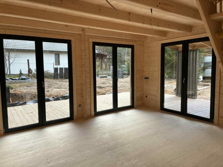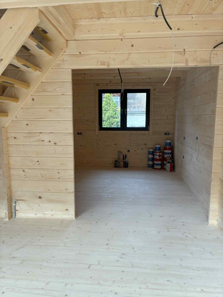 • ściany wewnętrzne z balika 44x138mm na pióro-wpust i zamki węgłowe