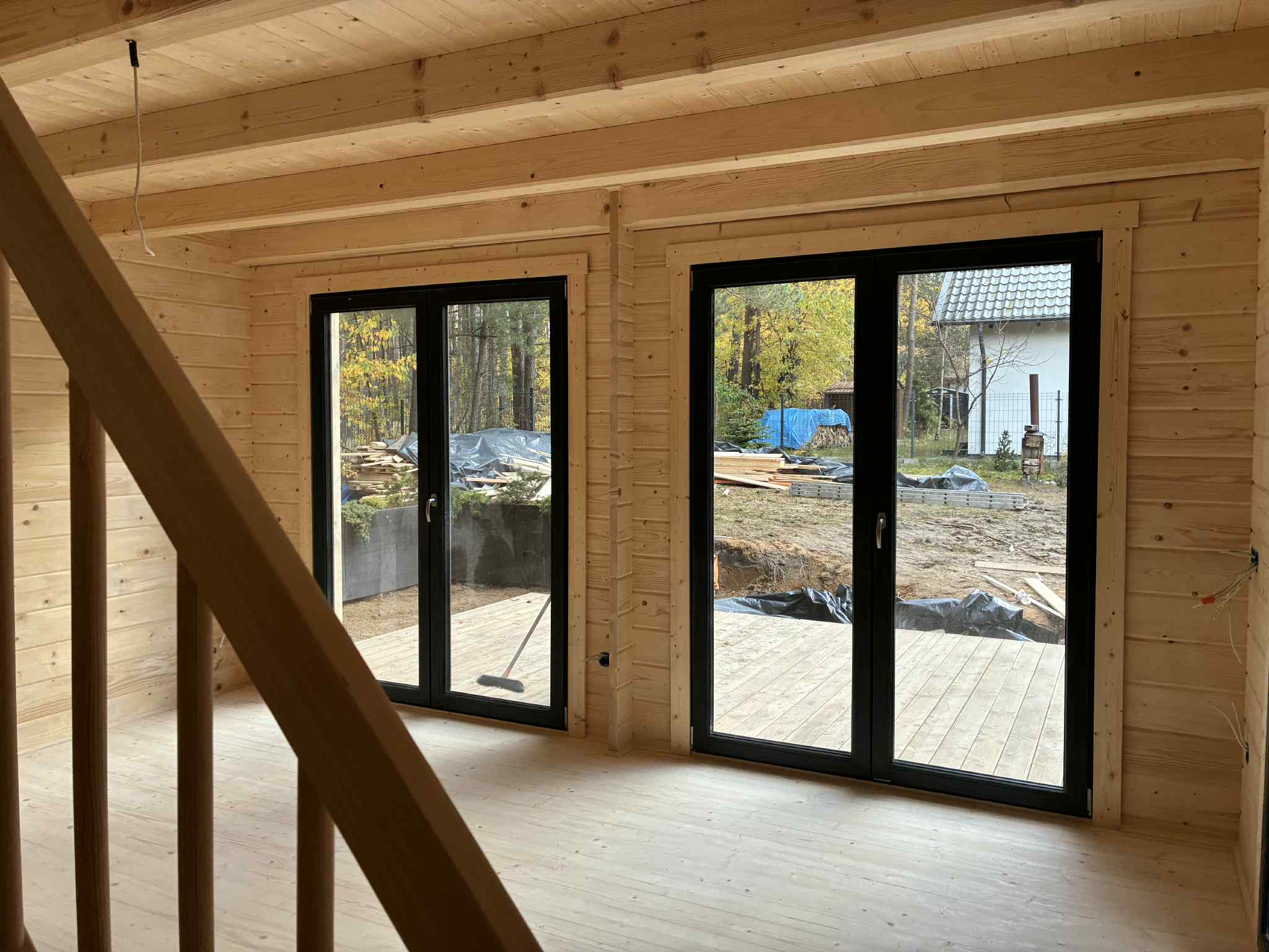 • ściany wewnętrzne z balika 44x138mm na pióro-wpust i zamki węgłowe