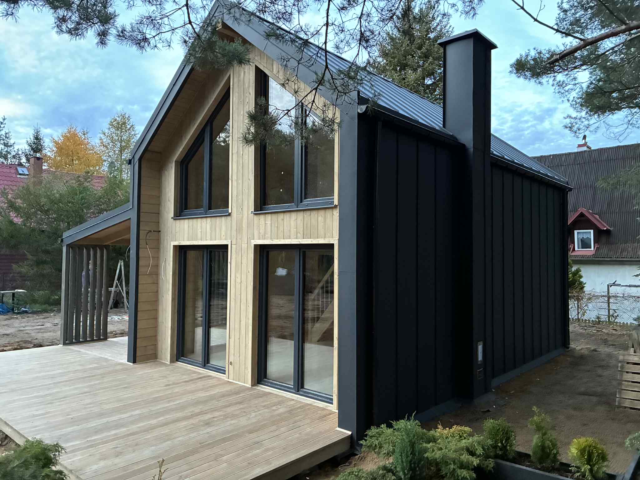 • konstrukcja płatwiowa dachu + nadbitka dachowa o gr.19mm (pełne deskowanie)